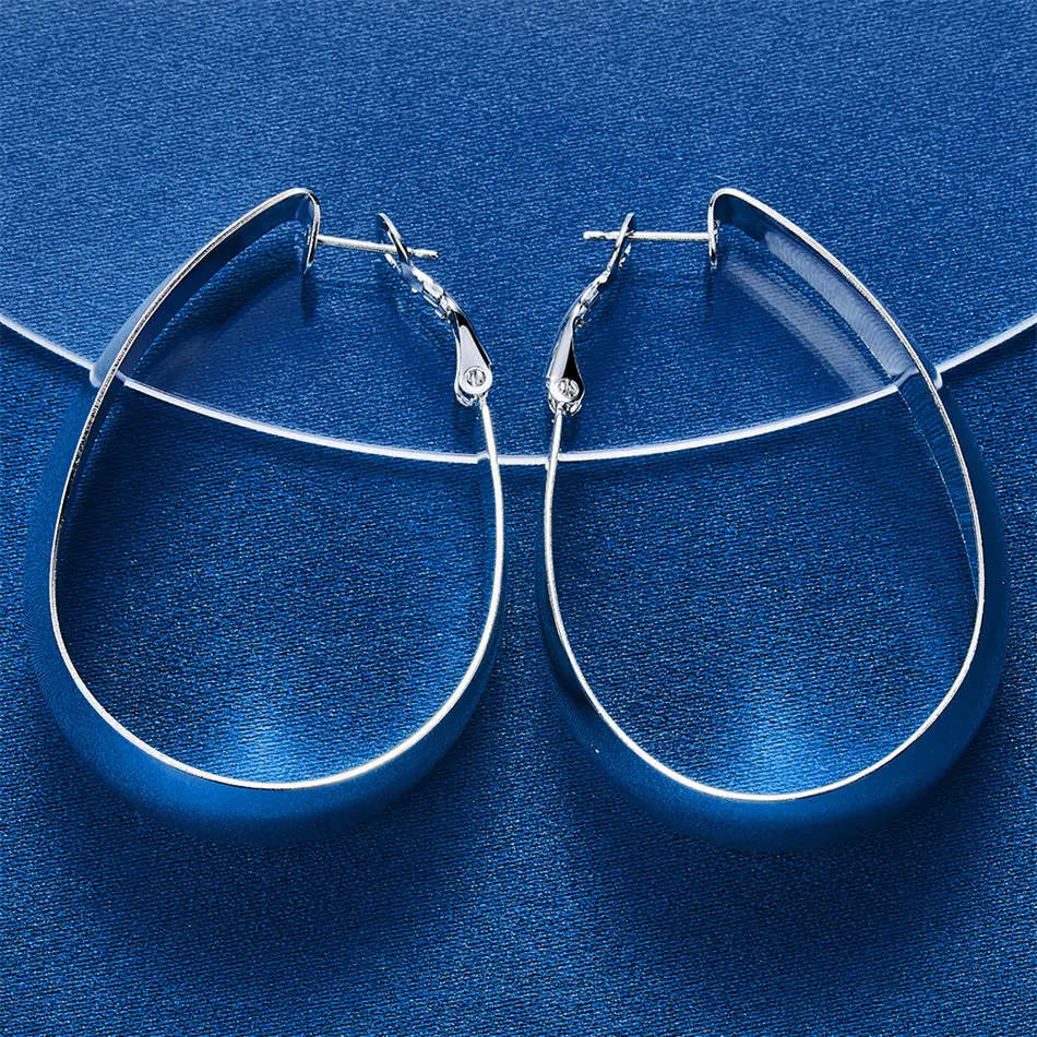 1 Pair 925 Sterling Silver 35mm Luxury Smooth U-Shaped Hoop Earrings – Fashion Women’s Party Jewelry & Gift