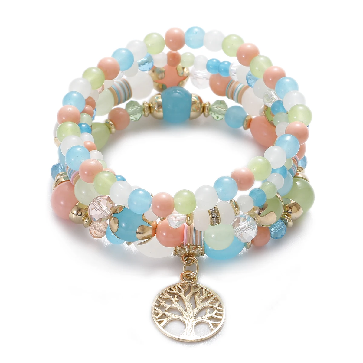 Bohemian Tree of Life Bracelet Set – Women’s Blue Stone Beaded Wrap Charm Bracelets, Ethnic Style Pulseras, Perfect Gift for Her