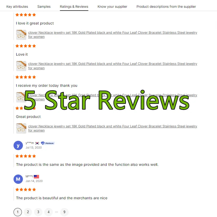 Women’s Trendy 18K Gold Plated Jewelry Set – Five Leaf Clover Necklace, Bracelet & Earrings, Stainless Steel Jewelry Para Mujer.